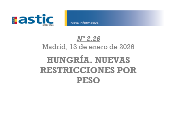 N.I. 2.26 Hungría. Nuevas restricciones por peso